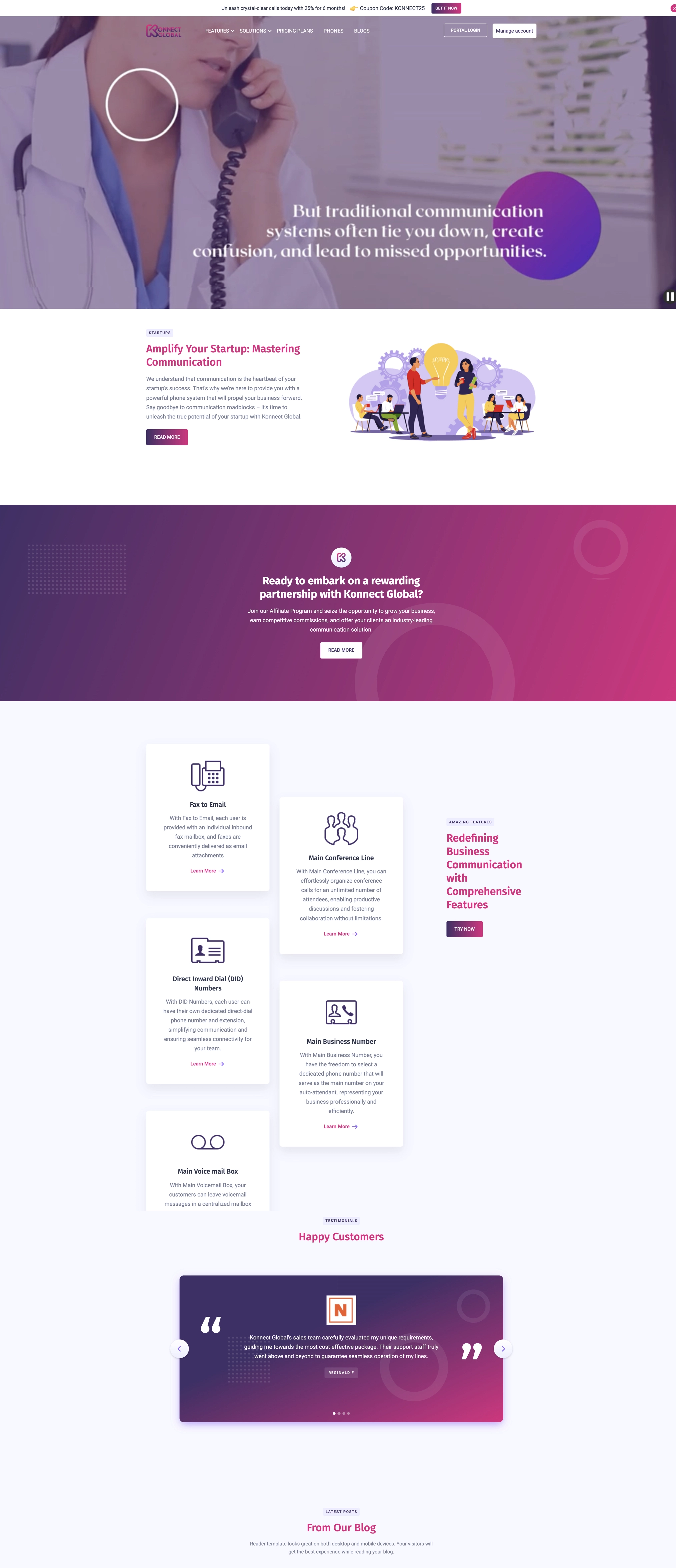 Our team embarked on a comprehensive approach to address Konnect Global’s needs. We meticulously set up the backend integration for the cloud PBX system, ensuring a solid technical foundation. Concurrently, we forged ahead with the development of a customer-centric website, which we seamlessly integrated with various payment methods to facilitate ease of transactions.